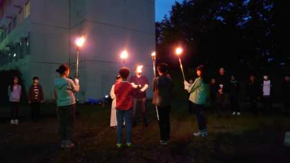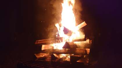 雨が上がり、キャンプファイヤーです。