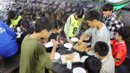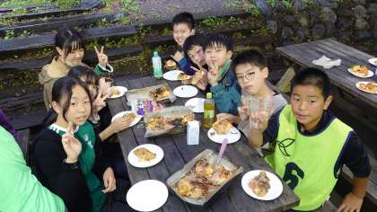 出来上がったピザをみんなで食べています。 大満足だそうです。