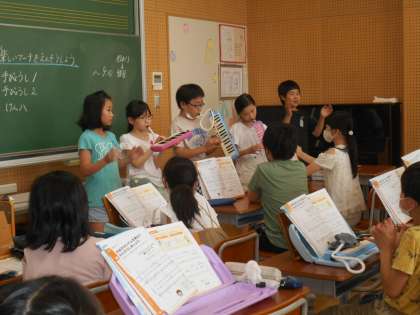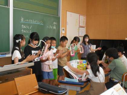 音楽科では、手拍子と鍵盤ハーモニカでリズムを合わせて演奏をしています。友達とリズムを確かめ合いながら、堂々と演奏しました。