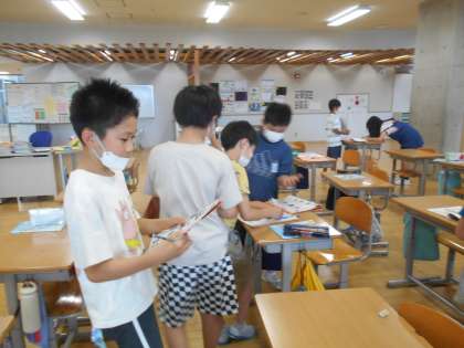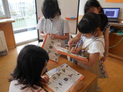 外国語活動では、「What time do you〜?」の構文を使って、相手に時刻を尋ねる活動をしています。学習した構文を上手に使いこなしていました。ALTのレイシェル先生にも「Very good!」と褒めていただきました。これからも自信をもって、どんどん外国語を使ってほしいです。