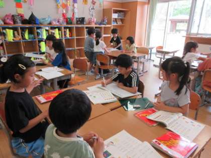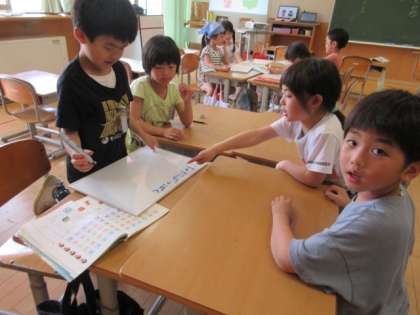 グループでしりとりをしました。友達と協力しながら、いろいろな言葉を見つけることができました。