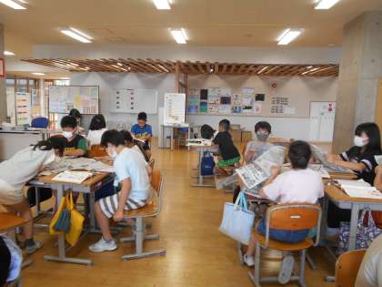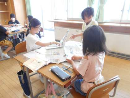 今日は、実際の新聞を見て、どんなつくりになっているのかを確かめました。記事だけではなく、天気予報や番組表など、様々な情報がかかれていることを知りました。