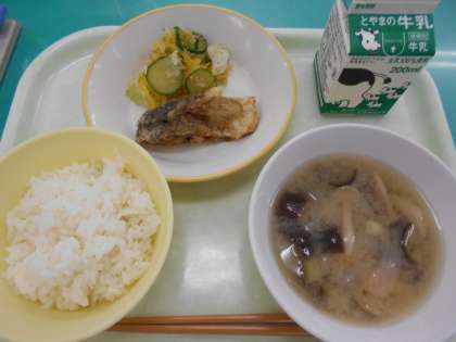 本日の献立は、揚げ魚のレモン味、あわせ和え、具だくさん汁、です。