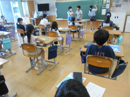 町別児童会を行い、1学期の集団登校を振り返りました。