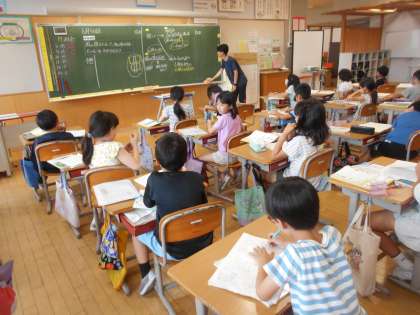 2年生は国語でマス目の習熟を(左)、3年生は理科の実験の学びを(中)、忙しい6年生は社会で古代を(右)を学習していました。