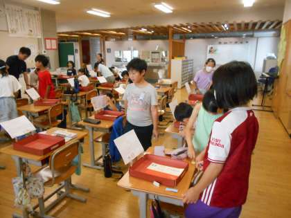 今日が1学期最終日。振り返りの集会、下足箱をそうじする学級がたくさんありました。