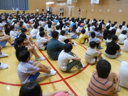9月1日、防災の日、「県民一斉防災訓練〜シェイクアウトとやま〜」に参加しました。これは、地震を想定して参加者が一斉に身を守るための安全確保行動を実施するという訓練です。中央小学校では「プラス1」訓練として、グラウンドへの避難、そして体育館に二次避難する訓練も行いました。