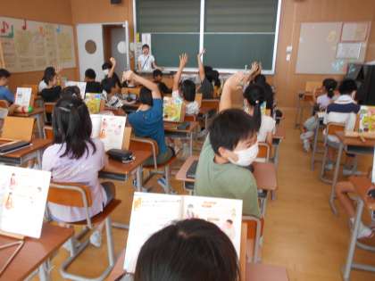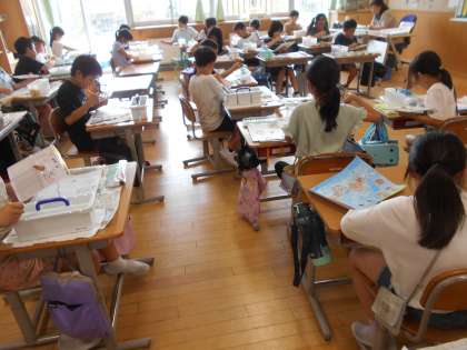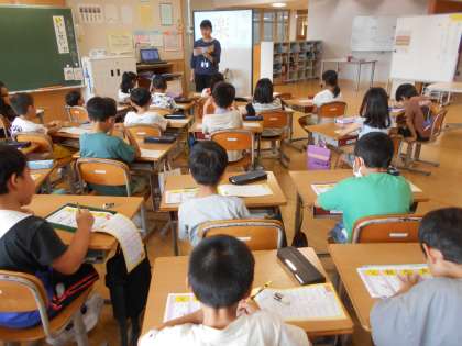 写真は左から、3年生の「夏の思い出」(図工)、4年生の音楽科、2年生の漢字(国語)です。