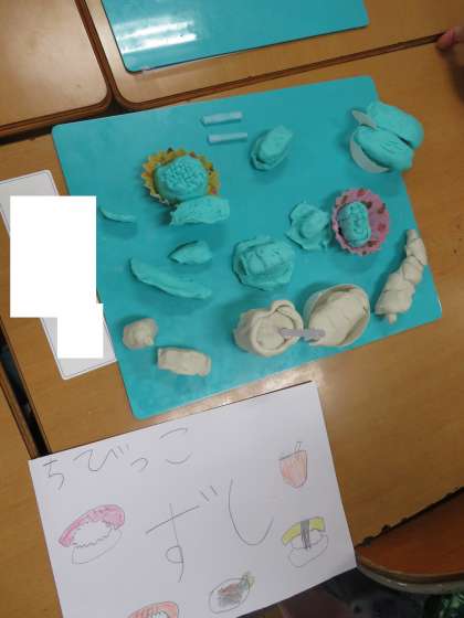 粘土でごちそうを作りました。