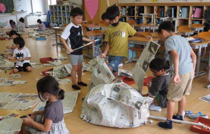 新聞を触った感じを大切にして、思い思いに想像を膨らませて遊びました。