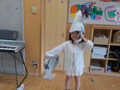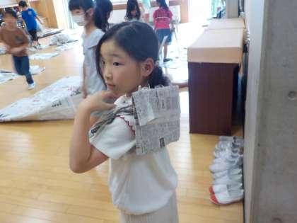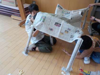 新聞を触った感じを大切にして、思い思いに想像を膨らませて遊びました。