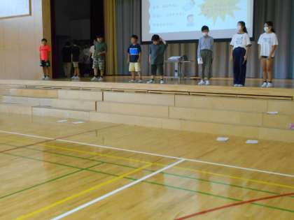来週に迫った学校保健委員会の練習に余念がない保健委員会です(右)
