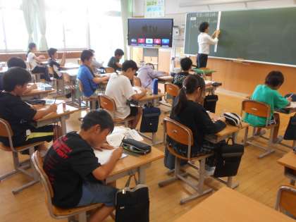 写真は、5年生の理科(中)、6年生の学習発表会の練習(右)です。