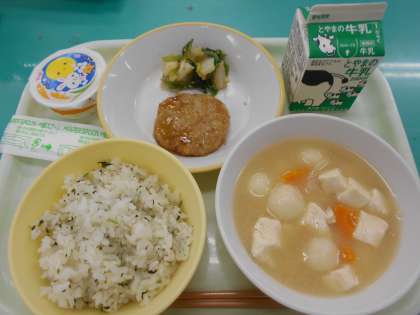 本日の献立は、鳥つくねのあんかけ、おひたし、白玉汁、お月見ゼリー、です。