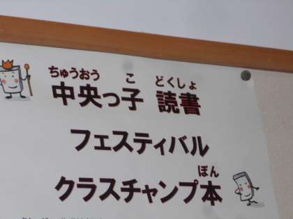 児童玄関には、先日行った「ビブリオバトル」のチャンプ本が紹介されています(左)。