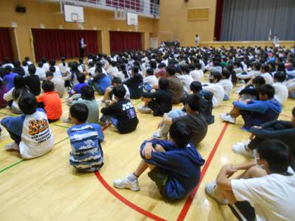 17日(火)、避難訓練がありました。今回は、学校の正面玄関で不審者を発見、体育館へ全員避難するという内容でした。非常呼び出しベルや緊急体制、緊急集会の意味を確認しました。