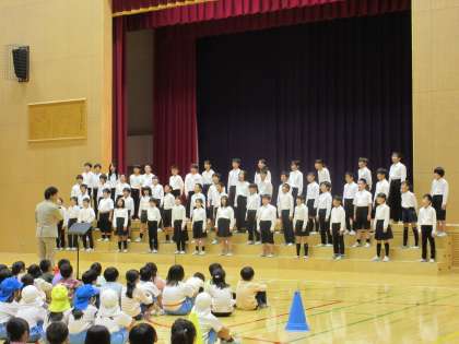18日(水)のなかよしタイムに、全校で5年生の合唱を聴きました。10月24日(火)にオーバードホールで第7区域連合音楽会が行われます。近隣小学校の代表学年が集まるこの音楽会に、中央小学校からは5年生が参加します。その音楽会に向けての校内発表会でした。これまで練習を重ねてきた5年生の美しい歌声が響き、聴いた子供たちは感想を伝えました。