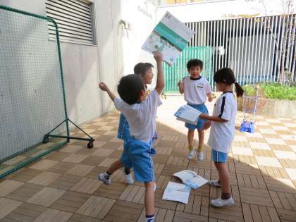 外で雲を眺めながら音読したり、役割を決めて音読したりするなど楽しみました。