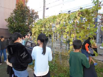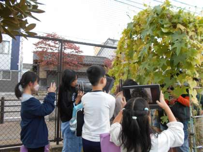 今日は、自然の様子を観察しました。ヘチマが大きくなっているのを見つけて写真を撮ったり、紅葉の様子を観察したりしました。