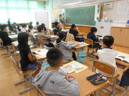 写真は、3年生の音楽(中)と4年生の道徳(右)です。3年生は、理科・社会、毛筆等新しいことが多いですね。