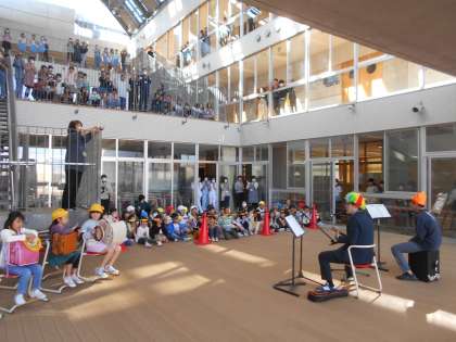 第3回中庭テラスコンサートがありました(左)。先生方も出演してくれて大盛り上がりでした。