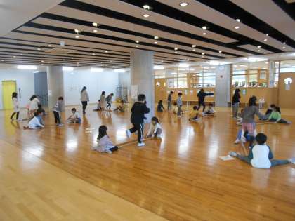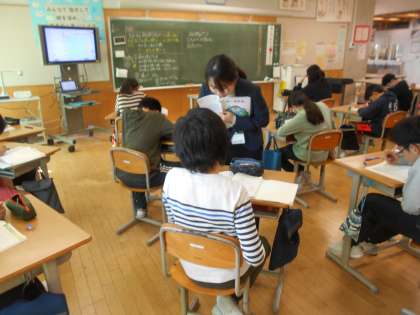 2年生がランチルームでバンブーダンスを(中)、6年生の算数(右)の様子です。