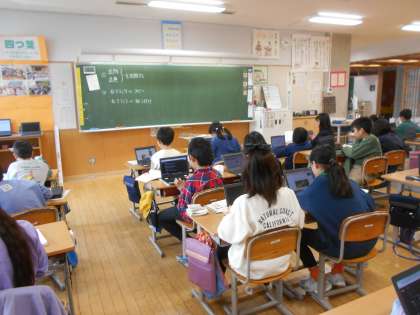 写真は左から、2年生の体育、4年生の道徳と端末です。長縄にチャレンジしている2年生はかけ算九九にも挑戦です。