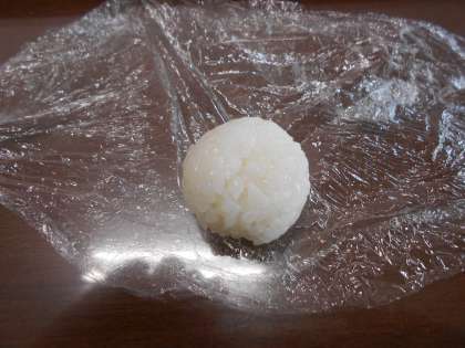 5年生の調理実習で自分たちが育てた米を使っていました。少しずつでも分けようと直径2cmぐらいのラップに包んでいました(左)。