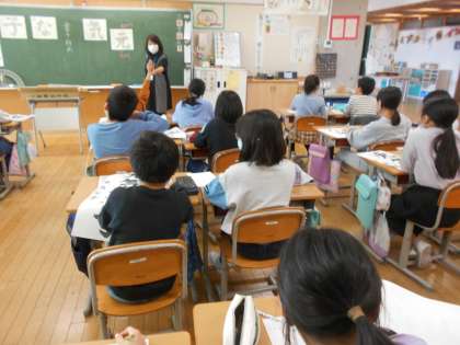 4年生が書き初めの練習をしていました(右)。もうそんな季節ですね。
