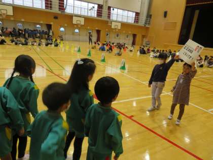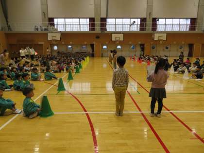 今日は、校区内の幼稚園・保育園の年長さんを招待してみんなで楽しむ「なかよしフェスティバル」でした。1年生は、年長さんに楽しんでもらえるようにと、自分たちで発表や遊びを考え、練習を重ねてきました。始めの会の司会や場所の案内も、1年生が行いました。「年長さんに楽しんでもらえて嬉しかった。」と満足そうな子供達でした。