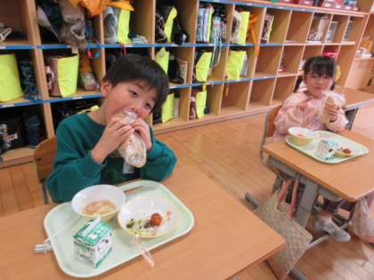 今日は、給食であげパンが出ました。給食では、なかなか出ないメニューということで、子供たちは朝からとても楽しみにしていました。きなこを落とさないように大切に食べる姿が可愛らしかったです。