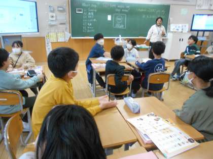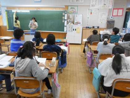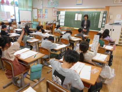 写真は左から、2年生の書き初め練習、4年生の算数、5年生の外国語です。