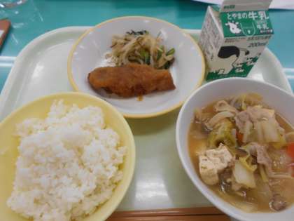 本日の献立は、揚げ魚のみぞれだれ、昆布和え、白菜鍋、です。