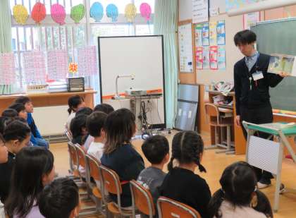 今日は図書館学校訪問がありました。「家」や「ことば」をテーマにした本を紹介してもらいました。