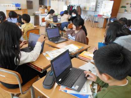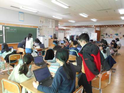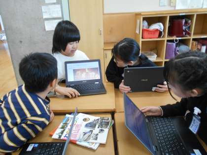社会科では、子供たちそれぞれが伝統として残る祭りや建物について調べ、まとめて紹介する学習をしています。今日は、班ごとに調べたことを発表しました。