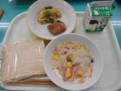 本日の献立は、照り焼きチキン、切り干し大根のサラダ、クリームスパゲッティ、です。