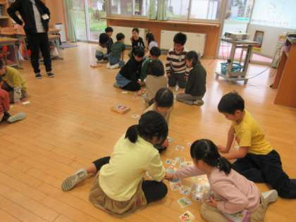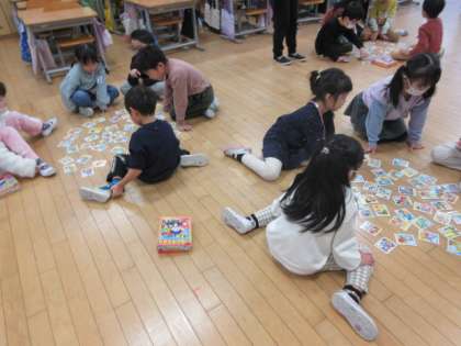 1月にあるかるた大会に向けて、犬棒かるたの練習を始めました。どの班も白熱した戦いでした。クラスで1番たくさんの札を取りたい!とどの子も意気込んでいます。