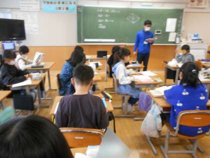 写真は左から、1年生の書き初め練習、2年生の体育、5年生の算数です。5年生は2学期の総復習をやってました。