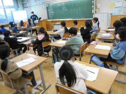 写真ですが左から、2年生の大掃除、3年生の冬休みの話、5年生の集会です。大掃除ですが、よく見かける光景です。