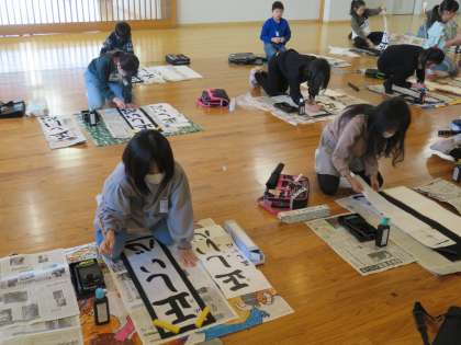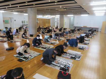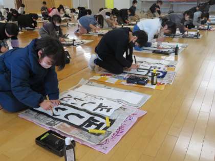 1月9日の始業式の日、毛筆では初めての書き初め大会があり、各クラス6人が金賞となりました。書き初め大会の雰囲気や、作品の上達ぶりから、一人一人の成長が感じられました。