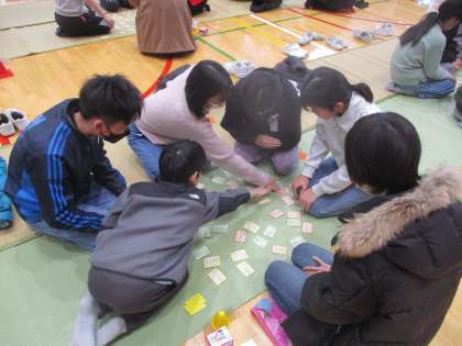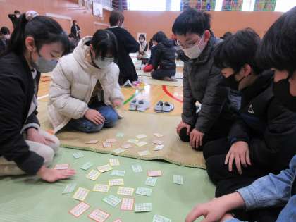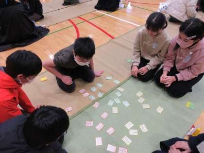 かるた大会の本番が行われました。子供たちは、2学期や冬休みに取り組んだ百人一首の練習の成果を発揮しようと、集中して取り組んでいました。