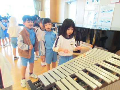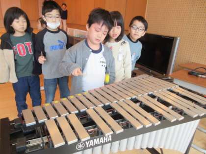 音楽の授業では、鉄琴の演奏の仕方について学習しました。実際に演奏することを通して、「響く音がする」「きれいな音がする」という気付きをたくさん見つけることができました。