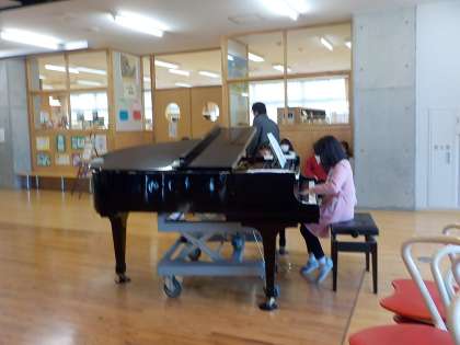 今日の中庭コンサートには、3年生から3人の子供が出演しました。それぞれ、練習の成果を発揮して、きれいな音色を響かせました。