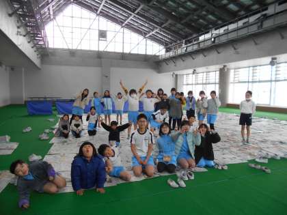 算数科では、広さの学習をしています。実際に新聞紙を使って1aと1平方メートルを作りました。1aが思っていたよりも広いことに、驚いていました。クラスみんなでお弁当が食べられそうな広さですね。