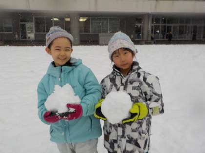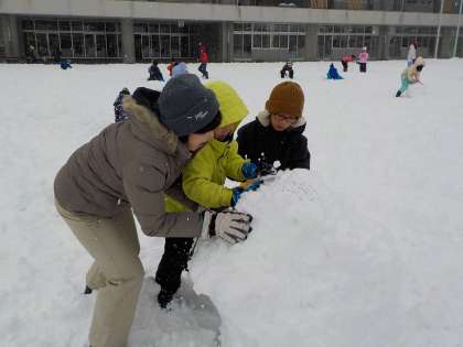 体育の授業で雪遊びをしました。雪だるまやかまくら、滑り台などを作って楽しみました。
