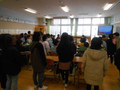 3年生のクラブ活動見学翌日、26日(金)です(左、中)。給食週間も最終日です。食、作ってくれる人への感謝、原材料について考える1週間になったらいいなと思います。まだ雪で大変ですが、家庭でもお願いします。