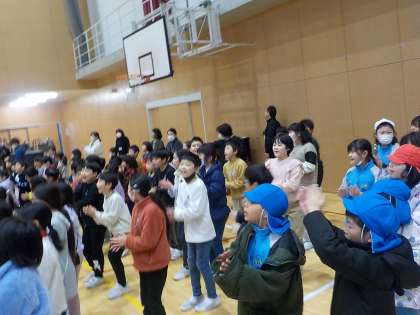 歌声集会では、全校のみんなで「Talk to me」を歌いました。今回は、リズムに乗ってダンスもしました。