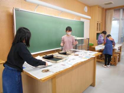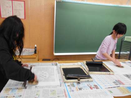 みんなが一生懸命彫った版を、刷りました。刷り上がった作品を見て、驚きと喜びがあふれていました。