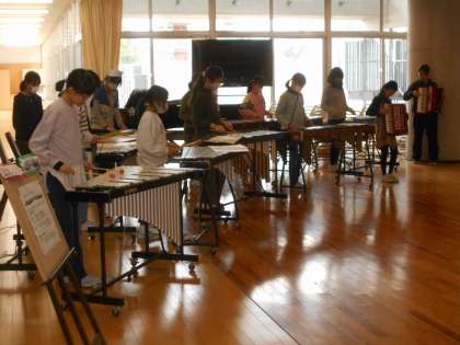 写真ですが、素敵な音楽が流れて来て、見てみると4年生が練習していました。