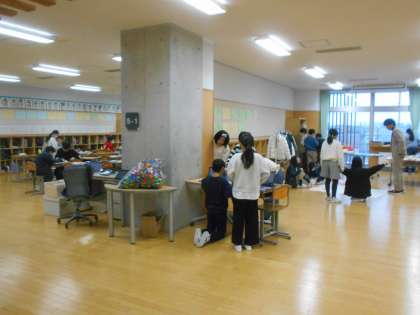 写真は、「祝う会」の5年生の準備の様子と忙しい6年生の様子です。